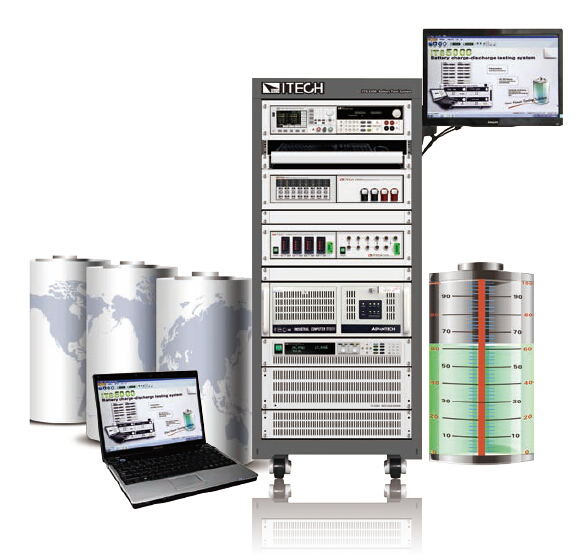 ITS5300電池充放電測(cè)試系統(tǒng)專門用于各種動(dòng)力電池(鉛酸、鎳氫、鋰電池、超級(jí)電容、氫燃料電池等)進(jìn)行性能檢測(cè),能夠模擬電動(dòng)汽車對(duì)電池組的各種等效工況要求??赏瑫r(shí)對(duì)上百個(gè)電池包或上百電池包中的200個(gè)單體電芯性能檢測(cè),較大的提高了產(chǎn)線的測(cè)試效率和產(chǎn)量。ITS5300測(cè)試系統(tǒng)由ITECH電源、電子負(fù)載、內(nèi)阻測(cè)試儀、溫度采集儀等產(chǎn)品搭配專業(yè)的電池測(cè)試軟件所組成,自動(dòng)化程度高,具有較高的穩(wěn)定性,是用戶測(cè)試的良好選擇。